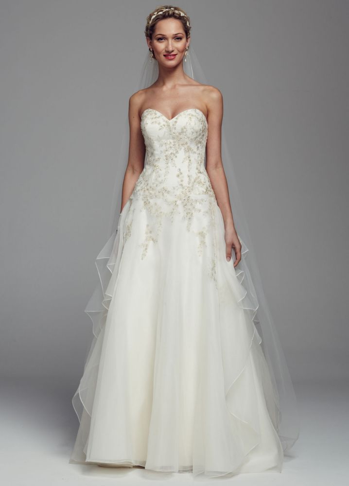 David\u002639;s Bridal Strapless Beaded Organza Ball Gown Wedding Dress